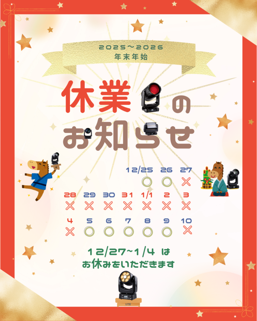 冬季期間中に頂きましたお問い合わせにつきましては、2026年1月5日(月)以降、順次対応させていただきます。
